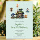 Celebrate your little one’s magical first birthday with our Enchanted Fairy Mushroom Invitation. Perfect for a whimsical, fairy tale-themed party, this charming invitation features a blue, green and golden orange colour palette, an adorable mushroom house, and enchanting fairy accents to set the scene for an unforgettable celebration. Optional back side with pink background and twinkle stars.