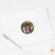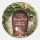 Enchanted Fairy First Birthday Thank You Classic Round Sticker. Let your guests step into a magical world with these enchanting thank you stickers! Featuring a whimsical fairy door nestled within lush green ivy, these stickers add a touch of fantasy to any occasion. A tiny fairy rests on a mushroom, while another perches on a ladybug, creating a scene straight out of a fairytale. The warm, rustic wooden door is adorned with delicate red flowers adds to the charm. This design is perfect for birthday parties where you want to express gratitude with a sprinkle of magic. Add a unique and memorable touch to your favors and gifts with this delightful fairy-themed creation.