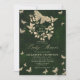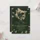 A whimsical, cascading wreath of lush foliage, as well as a sprinkle of butterflies sparkling with fairy lights and magic dust, layered with a gold effect (this is a digital effect, not real foil or glitter!) decorate this spring summer fall winter neutral baby shower invitation with an enchanted forest theme and a butterfly theme, as well as a hunter green background. An elegant, modern invitation for a fairytale baby shower. Perfect for moms and parents who love the fairytale forest setting, the fairy forest or fairy garden theme, the butterfly theme and hunter green, and who want a gender neutral celebration.