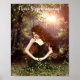 A serene moment in nature, with sunlight softly illuminating a woman in a flowing white dress, surrounded by lush greenery.