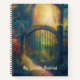 Custom gardening journal features an AI generated digital art image of a magical forest garden gate with sun ray beaming in background. Personalise text with name or other special sentiment