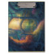 Double sided artistic clipboard features an AI generated digital art image of a magical forest garden gate with sun ray beaming in background.