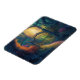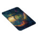 Stylish flexible magnet features an AI generated digital art image of a magical forest garden gate with sun ray beaming in background.