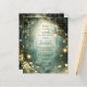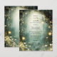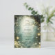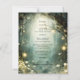 Ethereal forest path of flowers and trees are featured in this magical enchanted green wedding reception menu style, with glowing lights. An ethereal theme for your special day.
