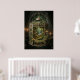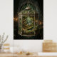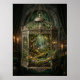 A miniature enchanted forest lives within an ornate antique birdcage, creating a captivating fusion of object and environment. Inside, tiny trees, winding paths, glowing lanterns, and reflective ponds form a rich, immersive landscape filled with detail and atmosphere. The aged metal cage, with its intricate design and soft patina, frames the scene like a delicate work of art. Mist and soft lighting enhance the magical mood, blending elegance with fantasy storytelling. This unique artwork is perfect for interiors seeking charm, mystery, and a refined fairytale aesthetic.