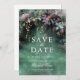 A whimsical watercolor illustration of lush foliage in emerald green with hues of lavender and lilac, sparkling with fairy lights and magic dust, decorates this spring summer fall quinceanera save the date invitation with an enchanted forest theme. An elegant, modern save the date for a fairytale celebration. Perfect for girls who love the fairytale forest setting, the fairy forest or fairy garden theme and emerald green with a touch of lavender purple.