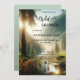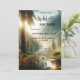 Original bridal shower invitation featuring a painting of a dreamy mountain scene with a forest and creek. On the back is a QR code template to make it easy for your guests to visit your website and RSVP as well as view the registry.
