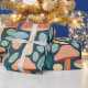 A whimsical pattern showcasing a variety of colourful mushrooms and leafy elements on a dark teal background, evoking the magical charm of an enchanted forest.