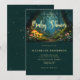 Enchanted forest baby shower invitation featuring majestic forest trees with cascading overhanging foliage, glowing mushrooms on the forest floor, and delicate wildflowers woven throughout a magical woodland scene. This watercolor design captures a luminous fairytale atmosphere with soft natural lighting, rich greens, earthy moss textures, and glowing forest details that feel both mystical and serene.