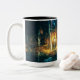A magical enchanted forest at night featuring a peaceful wooden bench surrounded by glowing lanterns, tall trees, and soft light reflections on water. The scene creates a calm, dreamy, and mysterious atmosphere, perfect for fantasy, meditation, and nature-inspired designs.