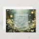 Ethereal forest path of flowers and trees are featured in this magical enchanted sage green wedding rsvp, with glowing lights.