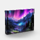 Take a stroll through this enchanted forest on a foggy night under the scintillating, falling stars and the dancing Aurora Borealis, otherwise known as the Northern Lights. The hillsides are cloaked in the glow of halos cast beneath them by the old-fashioned oil lamps lining the pathways that wind through the rolling hills. The never-ending glow from the sky and oil lamps are reflectively rippling on the pathways that are still wet from the morning rain.