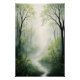 A magical forest, where mist wraps around tall trees and a serene stream. Soft green tones and diffused light create a calm, mysterious atmosphere. Perfect for bedrooms or meditation rooms, it transforms any space into a natural refuge, bringing peace and connection to nature.