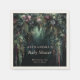This enchanted forest baby shower napkins features lush, wild greenery, hanging foliage, and tree branches draped with fairy lights in a faux gold effect, creating a romantic, magical atmosphere. A frame of fuchsia pink, purple, and cream roses adds a luxurious floral touch, while the glittering emerald green background enhances the mystical, fairytale aesthetic. Perfect for a spring, summer, fall, or winter baby shower, this elegant, modern engagement party napkins is ideal for brides who adore a fairy forest setting, woodland baby showers, fairy garden themes, romantic rose designs, and a colour palette of emerald green and gold. Whether you're planning a mystical fairytale baby shower, a botanical-inspired ceremony, or a whimsical woodland celebration, this luxurious floral engagement party napkins captures the magic of a dreamy forest baby shower.