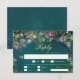 This enchanted forest wedding RSVP card with meal choice features lush, wild greenery, hanging foliage, and tree branches draped with fairy lights in a faux gold effect, creating a romantic, magical atmosphere. An arch of fuchsia pink, purple, and cream roses adds a luxurious floral touch, while the glittering emerald green background enhances the mystical, fairytale aesthetic. Perfect for a spring, summer, fall, or winter wedding, this elegant, modern RSVP card is ideal for brides who adore a fairy forest setting, woodland weddings, fairy garden themes, romantic rose designs, and a colour palette of emerald green and gold. Whether you're planning a mystical fairytale wedding, a botanical-inspired ceremony, or a whimsical woodland celebration, this luxurious floral RSVP card captures the magic of a dreamy forest wedding.