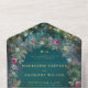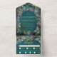 This enchanted forest wedding, all in one tri-fold invitation features lush, wild greenery, hanging foliage, and tree branches draped with fairy lights in a faux gold effect, creating a romantic, magical atmosphere. A frame of fuchsia pink, purple, and cream roses adds a luxurious floral touch, while the glittering emerald green background enhances the mystical, fairytale aesthetic. Perfect for a spring, summer, fall, or winter wedding, this elegant, modern invitation is ideal for brides who adore a fairy forest setting, woodland weddings, fairy garden themes, romantic rose designs, and a colour palette of emerald green and gold. Whether you're planning a mystical fairytale wedding, a botanical-inspired ceremony, or a whimsical woodland celebration, this luxurious floral invitation captures the magic of a dreamy forest wedding