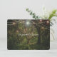 Trendy, Enchanted Forest theme Wedding Invitation. Beautiful forest with pretty light strings hanging among the trees. Customise text and font to your needs. Reverse background colour can be changed as well.