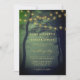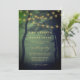 Rustic woodland dark green forest and golden hanging twinkle string lights modern faux gold typography script wedding invitation.