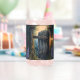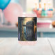 Step into a dreamy twilight world with this enchanting design featuring a rustic wooden garden gate, softly illuminated by a glowing lantern and surrounded by lush foliage and blooming foxgloves. Tiny fireflies dance through the dusky air, creating a magical, fairytale atmosphere that feels both nostalgic and otherworldly. The painterly style and rich colour palette of midnight blues, soft golds, and violet tones invite you to imagine secret paths and quiet moments under the stars. Perfect for bringing a touch of woodland wonder to any space, this piece evokes the charm of moonlit gardens and summer nights. AI generated artwork.