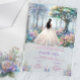 Celebrate her magical day with this Enchanted Garden Quinceañera invitation, beautifully printed on a clear acrylic card. The design showcases a stunning young woman in a shimmering white gown with long flowing hair, standing in a dreamy fairytale forest filled with glowing pastel flowers, fantasy mushrooms, and twinkling sparkles. This elegant and ethereal setting creates a breathtaking first impression for any quince años event. Perfect for any birthday or event - simply add your details.