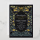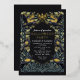 Elegant and gothic design with ravens and foliage. This design features a black background, with dark blue ravens and muted green leaves with gold accents.