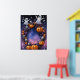 This enchanting poster features a Halloween-themed illustration with a dark, starry night sky as the backdrop. The design includes a symmetrical arrangement of orange leaves and purple branches forming an oval frame. Within this frame, four expressive ghost figures float alongside small white butterflies. At the bottom, five jack-o’-lanterns with various carved expressions add a festive touch. Perfect for adding a spooky yet charming atmosphere to any space.