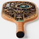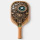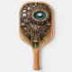 A pickleball paddle adorned with a mesmerising green eye, a unique and mystical design that catches the eye.