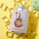 Step into a world of whimsy and magic with this adorable Halloween can cooler featuring the phrase “Enchanted Pumpkin Patch.” A smiling jack-o’-lantern dressed in a witch hat and holding a sparkling purple witch wand brings a touch of charm and enchantment to spooky season. Perfect for those who prefer cute over creepy, and magic over mayhem.