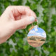 This round keychain depicts a beautiful scene on a sunny Thanksgiving Day 2012 with white fluffy clouds against a clear blue sky at the Enchanted Rock State Natural Area in the Texas Hill country near central Texas. This is the lower part of the trail that leads up to the summit of a giant pink granite boulder, which is seen near the middle of the keychain. The sun’s gentle rays bathed the pink coloured granite rocks, giving them a warm glow. This is a very popular park for stargazers at night and hikers of all abilities during the day due to its easy access.