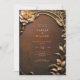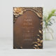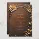 Unveil the beauty of your love with this enchanted Rust and Gold Wedding Invitation. Featuring a textured ornamental brown background adorned with golden metallic decor in a 3D effect, this invitation radiates sophistication and charm. Customise to capture the essence of your special day.