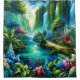 Introducing the Enchanted Waterfall Oasis shower curtain, a stunning piece from the “Cascades & Currents Collection” by H2OArt by AlexSandra. This design captures the serene beauty of nature with vibrant waterfalls cascading into a central river, surrounded by lush greenery and colourful tropical florals. The misty atmosphere adds a touch of freshness, making it a perfect addition to any bathroom decor. Transform your space into a tranquil retreat with this exquisite shower curtain, celebrating the harmonious beauty of nature.