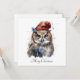 Invite your guests to a truly magical holiday celebration with our "Enchanted Christmas Owl" customisable Christmas invitation. This charming invitation features a delightful watercolor illustration of a Christmas owl, adorned with a festive red hat, bringing a whimsical and joyful spirit to your holiday gathering details.