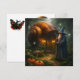 Description send a message from a world of wonder with this premium 5.25 square flat greeting card featuring a high detailed digital painting of a mystical wizard standing before a glowing snail shell cottage in a moonlit pumpkin patch. This card captures the ultimate cottage core fantasy vibe the back features a delicate butterfly and shell detail making it a truly artistic piece of stationary.