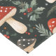 This charming illustration showcases a festive woodland scene with red and brown spotted mushrooms, holly leaves, and vibrant red berries, interspersed with pine branches. The dark background highlights the warm, earthy tones of the mushrooms and the rich greens of the foliage, creating a whimsical yet cosy holiday atmosphere. The playful arrangement evokes a sense of winter magic, blending nature with a seasonal spirit.
