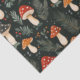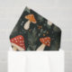 This charming illustration showcases a festive woodland scene with red and brown spotted mushrooms, holly leaves, and vibrant red berries, interspersed with pine branches. The dark background highlights the warm, earthy tones of the mushrooms and the rich greens of the foliage, creating a whimsical yet cosy holiday atmosphere. The playful arrangement evokes a sense of winter magic, blending nature with a seasonal spirit.