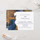 Gorgeous abstract blue with rich gold marbling on left side. Text templates created on the right on white background. Background and font colours can be changed with the customise link. Full image on back.