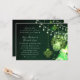 This enchanting wedding invitation features a beautiful Celtic design with charming clovers and string lights on a green background. -