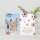 Enchanting Dark Red & Faux Gold Snowflakes Merry Christmas Holidays Cards with Family Photo.