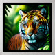 Embrace the untamed beauty of the wild with this captivating print featuring a majestic Jungle Tiger in it's natural habitat. Set against a backdrop of lush green foliage, the Tiger exudes an aura of strength, power and freedom as it prowls through the dense jungle. The intricate details of the Tiger's coat, the intensity of its gaze, and the graceful poise of its movement are expertly captured. The lush greenery of the jungle adds a depth and richness to the design, showcasing the Tiger as a true ruler of its domain. Whether your a nature enthusiast, a wildlife lover, or simply appreciate the awe-inspiring beauty of the animal kingdom. This print is a perfect statement piece for your home or office.