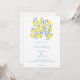 This joyful wedding invitation radiates happiness with its bright yellow and blue theme. The top of the card features a delightful lemon branch illustration, bursting with vibrant yellow lemons and delicate blue leaves. The handwritten-style script “The Wedding of” adds a touch of elegance and personality, while the couple’s names and wedding details are clearly displayed in a clean serif font. The combination of playful design and classic typography makes this invitation perfect for sunny, cheerful weddings, whether held in the spring or summer. It’s a fresh, modern way to invite guests to celebrate your special day.