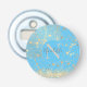 An elegant gold ornate lotus mandala on a blue turquoise backdrop with gold stars raining down where at the bottom is gold glittery edging for extra glam. Whimsical stylish vibes. Can be customised with a letter and name or logo in the centre on a blue circle to make it uniquely your own.