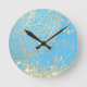 Enchanting Mandala with Gold Stars on Turquoise Round Clock