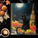 A luminous black cat sits quietly amongst pumpkins, fallen leaves, and golden autumn flowers beneath a glowing full moon. This whimsical Samhain illustration captures the gentle magic of the fall season, blending Halloween charm with cozy harvest warmth. Perfect for cat lovers and anyone drawn to subtle witchy Samhain vibes, this design brings a touch of seasonal enchantment and celebrates October nights and feline mystery.