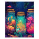 Step into a world of enchantment with the "Enchanting Mushroom Jars – Hypercolorful Dreamscapes" poster. This captivating artwork takes you on a journey through a whimsical and vibrant forest filled with mushroom jars, creating a mesmerising visual experience.