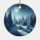 Enchanting Night Snowy Forest Sticker Ceramic Ornament