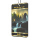 Under a starry sky, gentle waterfalls cascade over smooth stones, creating a soothing symphony of nature. Lush trees stand tall against the backdrop of glowing lights, illuminating the serene landscape.