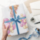 Enchanting Watercolor Pink Girl Teddy Bear Balloon Wrapping Paper