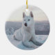Enchanting White Husky Dog in the snow Ceramic Ornament