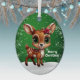 Enchanting Young Buck Starry Green Whimsical Winter Woodland Wildlife Animal Oval Metal Xmas tree Ornament! Depicting a lovable cartoon character portrayal of a gentle floral fawn atop a snowy terrain, framed by cascading stars along both edges. Subtle poinsettia flower petals grace its ear, embodying a serene sight suited for the joyous holiday season. This design matches well with evergreen gifts, making them great personalized markers for packages, spreading delight throughout your abode. This endearing dual-faced artwork is customizable for straightforward tailoring with your unique greetings or names on each face! It transforms into a prized heirloom for ongoing enjoyment. Modify the decor by adjusting the editable white "Merry Christmas" lettering, typeface, or omit it. You're welcome to adapt this illustration to further merchandise for infinite seasonal ingenuity. Act fast—tailor and acquire this custom doe decoration now to elevate your festivities to magical heights!