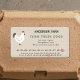 A rustic label sticker for Farm Fresh Eggs with a beige background and a white chicken. There are months and days that you can circle to indicate the laying date. You also have customisable farm name and texts to provide information on the production of your eggs such as organic, free-range, local, etc. It could be used for a family farm, food markets, grocery shops, etc.